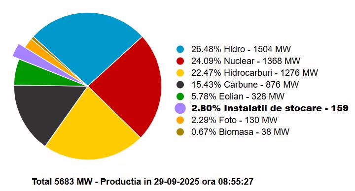Datele Transelectrica de azi dimineață, 29 septembrie, arată că, la, la un moment dat, aproape două treimi din puterea instalațiilor de stocare a fost folosită, pentru puțină vreme, pentru a injecta energie electrică în rețea.