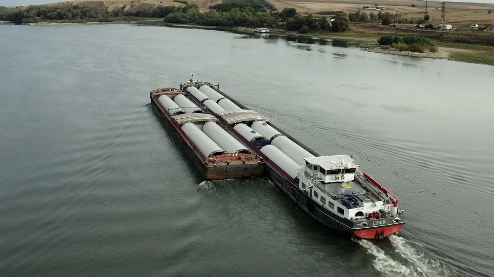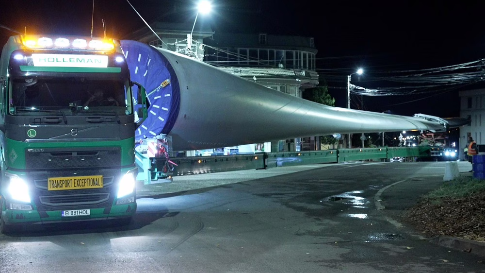 Componentele turbinelor și palele de 82 de metri au fost încărcate în Agigea, pe litoralul Mării Negre, și au fost transportate cu barja de-a lungul Dunării până la Galați, unde au fost descărcate și duse cu trailerele la amplasament.